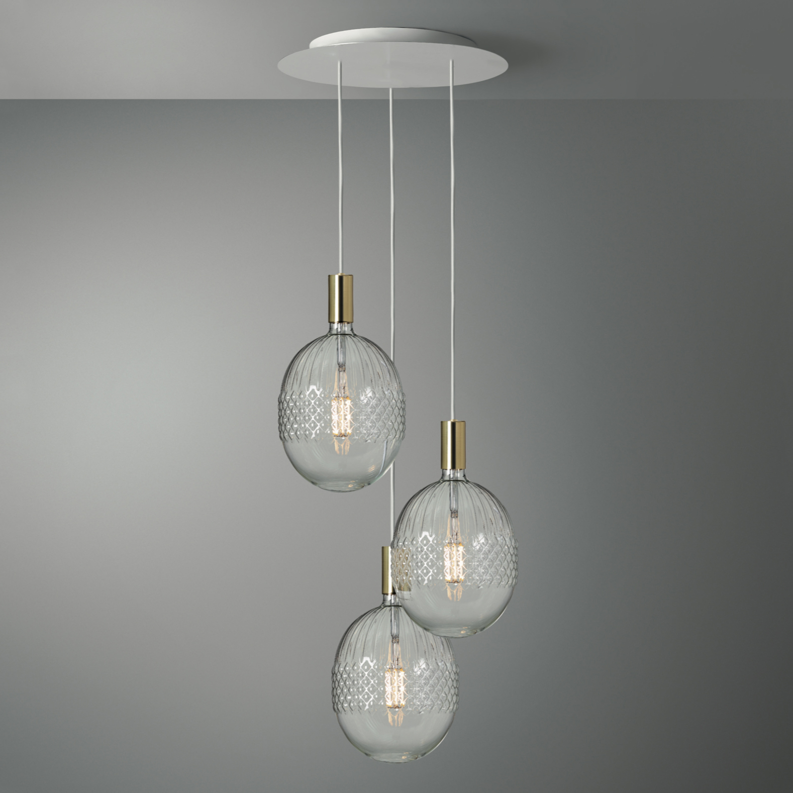 3-svetelné závesné svietidlo ROMA. 3 Závesné svietidlá vychádzajúce z veľkej stropnej rozety s 3 rovnakými žiarovkami. Obzvlášť vhodné pre veľké prostredia, ako sú haly, salóniky, spálne. Môžete si vybrať rôzne modely z elegantne navrhnutých žiaroviek s mimoriadnym vizuálnym komfortom. Tieto kombinácie sa vyznačujú žiarovkami s povrchovou úpravou podobnou porcelánu, ktoré dávajú štruktúre veľmi rafinovaný vzhľad a majú rozptýlený, rovnomerný, veľmi relaxačný a zároveň intenzívny svetelný efekt. Žiarovky s povrchovou úpravou podobnou krištáľu majú žiarivejšie, živšie a ostrejšie svetlo. Obidve riešenia ponúkajú vysoké farebné podanie a možnosť zmeny intenzity svetla ( v prípade že máte zabudovaný vlastný stmievač alebo si dokúpite stmievač z nášho sortimentu).