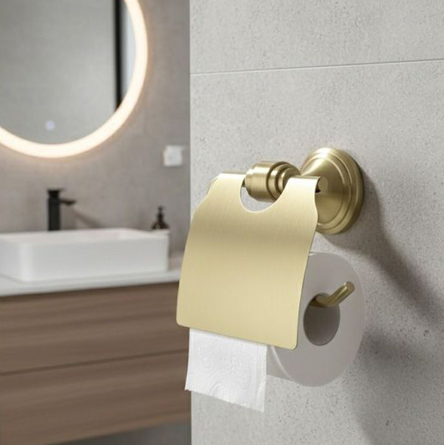Držiak na toaletný papier v brúsenej zlatej farbe