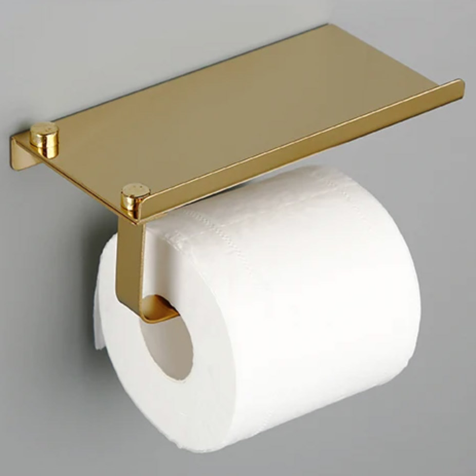 Držiak na toaletný papier v zlatej farbe + stojan na mobilný telefón