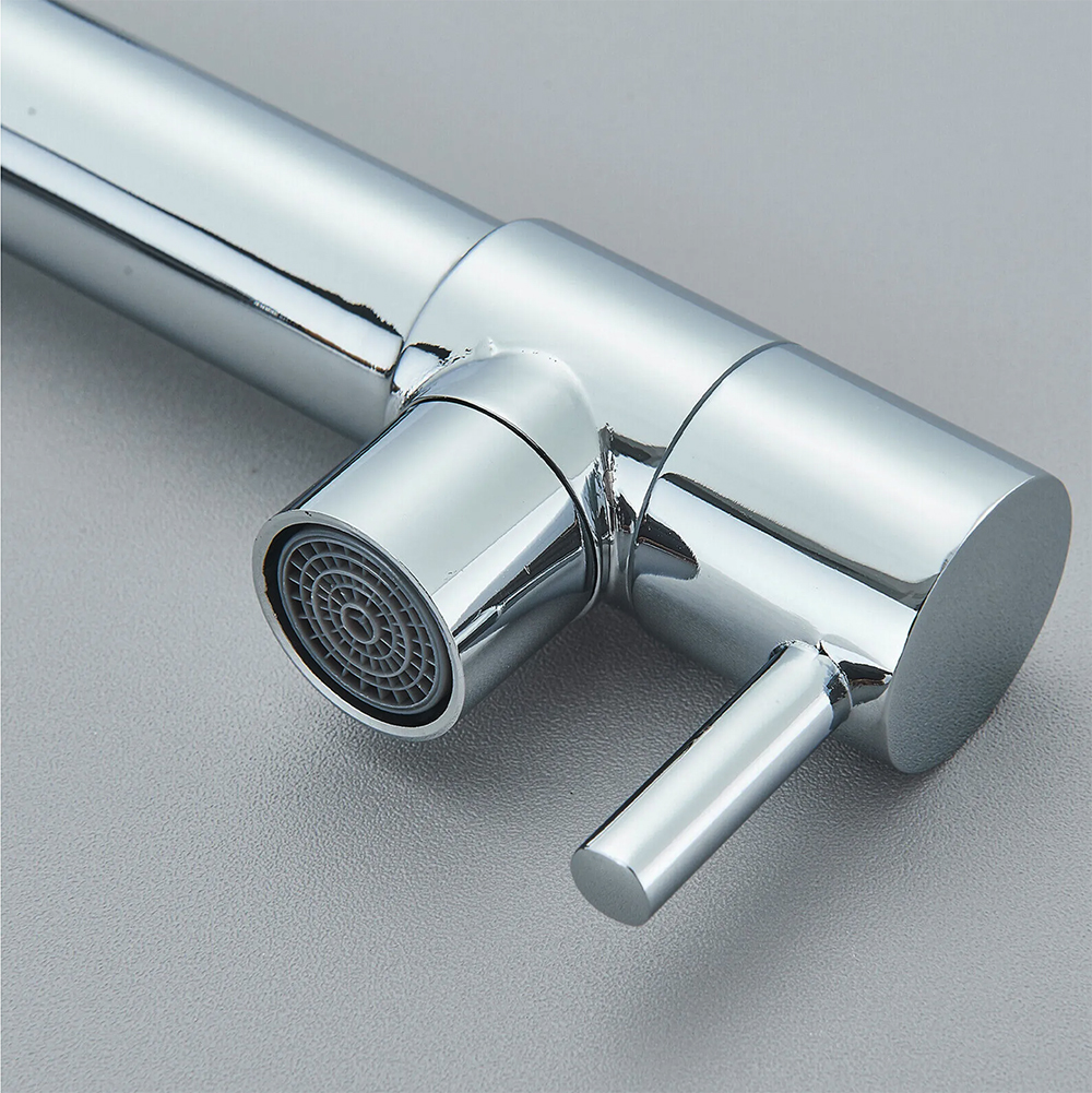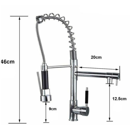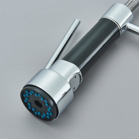 - Kohútik sa dá otáčať o 360°. Obe sprchy možno ovládať nezávisle od seba. Hlavnú sprchu možno pohodlne ovládať tlakom ruky. Vďaka zaveseniu sa dá aj voľne pohybovať. Vďaka dvom sprchám je ideálna pre dve vedľa seba stojace umývadlá.