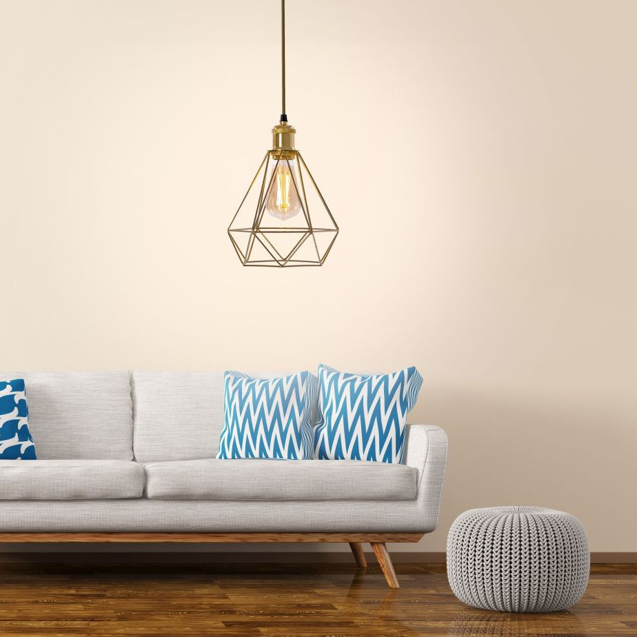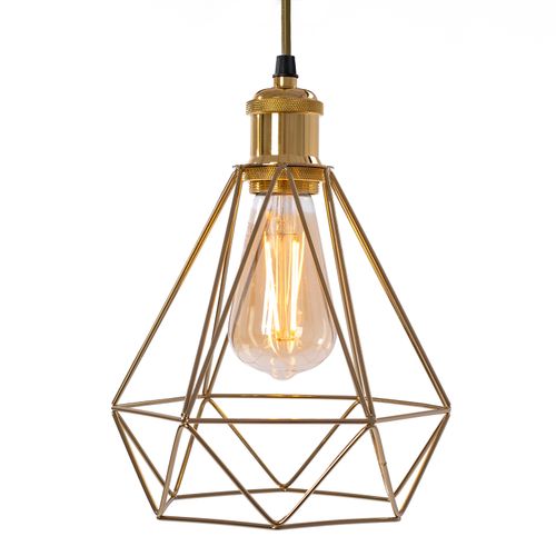 Historické závesné svietidlo s klietkou v zlatej farbe. Lampa je celá vyrobená z kovu vrátane kovovej mriežky na strope. Lampa má najobľúbenejší závit určený pre žiarovku E27. Dĺžku kábla možno nastaviť podľa miestnosti alebo usporiadania.