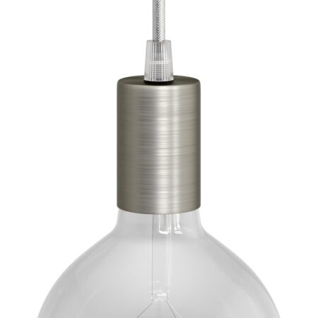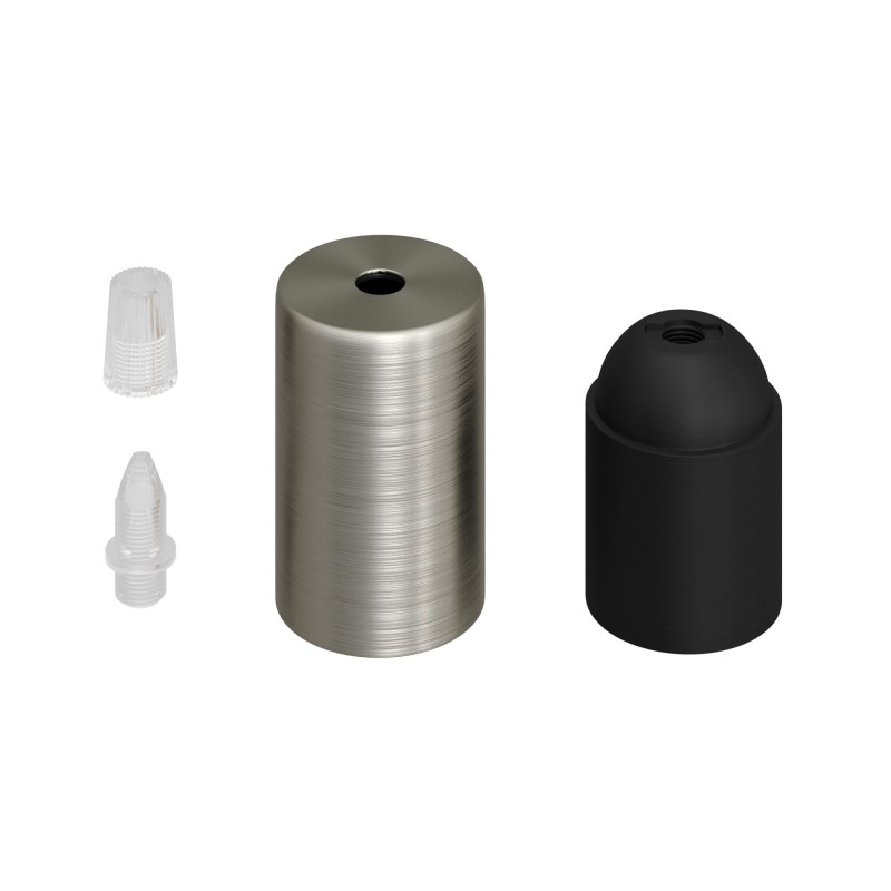 Predstavujeme vám masívny komponent v modernom štýle pre Vaše svietidlo. Ideálna do miestnosti s novodobým nádychom. Nastaviteľná skrutka na odlahčenie vodiča je súčasťou. Táto jedinečná moderná objímka je kompatibilná so všetkými našimi káblami (okrem retro kábla) a žiarovkami s päticou E27. Vynikajúca kvalita a dokonalý štýlový dizajn. Vyrobená z kvalitného materiálu s rúrkovým dizajnom. Ideálne na výrobu vlastného závesného svietidla, stále však treba dokúpiť (nie je súčasťou sady) kábel – ideálne textilný a stropný držiak.