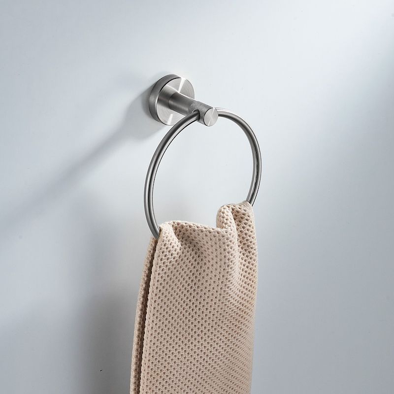 Kúpeľnový vešiak na uteráky a osušky v tvare kruhu, brusená niklová farba