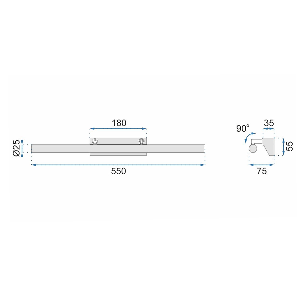 Nadčasové a elegantné nástenné LED svietidlo, ideálne ako osvetlenie kúpeľne nad zrkadlom, ako aj výkladov alebo kaderníckych salónov. Vyrobené z nehrdzavejúcej ocele. Bude vyzerať skvele aj pri osvetlení obrazov a umeleckých diel. Nastaviteľné pomocou ramena nastaviteľného o 180 stupňov. LED Kúpeľňové nástenné svietidlo v chrómovej farbe vysokej kvality určené do kupeľne, wc, kuchyne a pod. Moderné LED svietidlo z nášho sortimentu je určené na nasvietenie izby od odrazovej plochy stropu, zrkadla alebo steny. Má funkciu okamžitého rozsvietenia a zaručuje optimálny svetelný výkon.