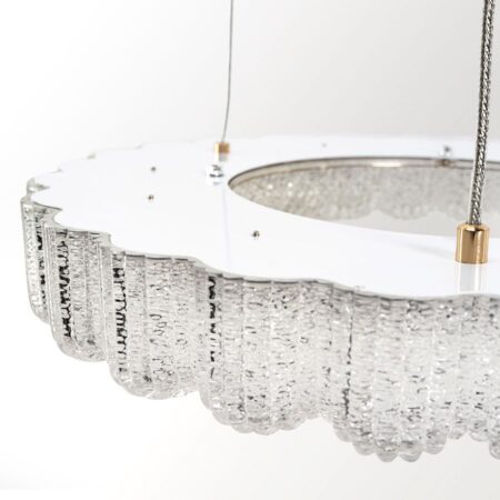 LED závesná lampa je jedinečnou ponukou pre milovníkov elegancie a moderného dizajnu. Jej jedinečný dizajn priťahuje pozornosť vďaka frézovanému trojrozmernému tienidlu vyrobenému podľa vzoru kryštálov, ktorá krásne rozptyľuje svetlo a vytvára efektné odlesky. Jemné vlasce, na ktorých je lampa zavesená, dodávajú konštrukcii ľahkosť a takmer ju vznášajú vo vzduchu, čím dodávajú celku dojem jemnosti. Akcenty vo farbe ružového zlata zdôrazňujú luxusný charakter rámu a dokonale ladia s leskom. Neutrálna farebná teplota 4000 K poskytuje príjemné, prirodzené svetlo, ideálne na každodenné použitie. Je to vynikajúci výber do elegantnej obývačky, jedálne alebo reprezentatívnej haly – všade tam, kde je dôležitý štýl a jedinečná forma. Závesná LED lampa harmonicky zapadne do výzdoby každého priestoru a dodá mu výrazný, neopakovateľný charakter.