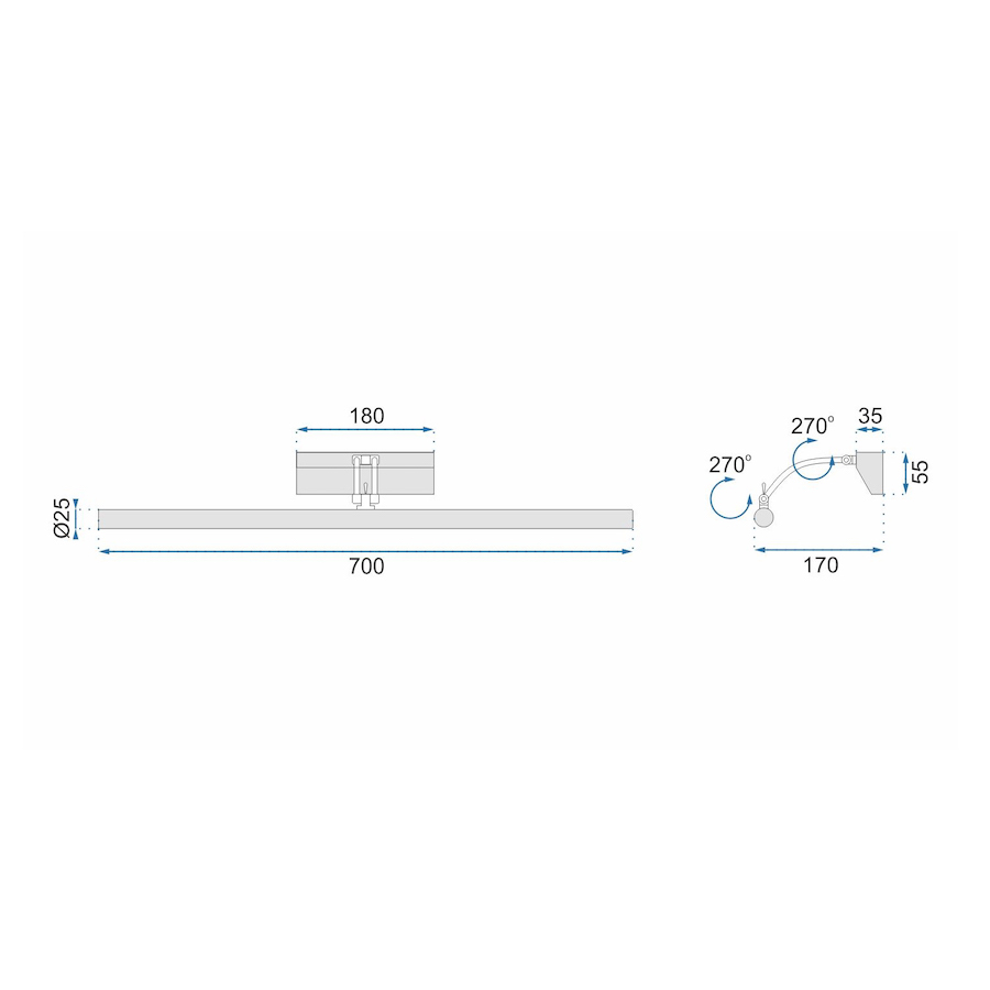 Nadčasové a elegantné nástenné LED svietidlo, ideálne ako osvetlenie kúpeľne nad zrkadlom, ako aj výkladov alebo kaderníckych salónov. Toto nadčasové a elegantné nástenné svietidlo Led je ideálne ako osvetlenie v kúpeľni nad zrkadlom, ako aj vo výkladoch alebo kaderníckych salónoch. Skvele bude vyzerať aj ako obrazové svetlo. Lampa má nastaviteľné rameno nástenného svietidla s možnosťou nastavenia uhla sklonu v dvoch bodoch. Moderný dizajn a spracovanie lampy určite zaujmú každého.