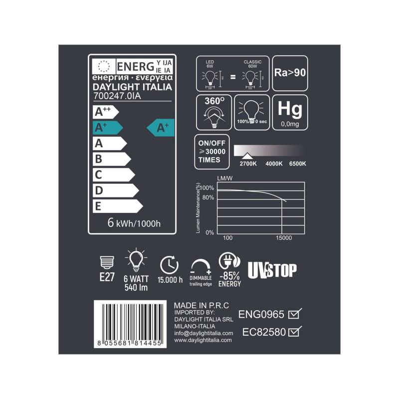 • Priehľadná LED žiarovka - G125, 4W, E27, 400lm, Teplá biela | Daylight Italia