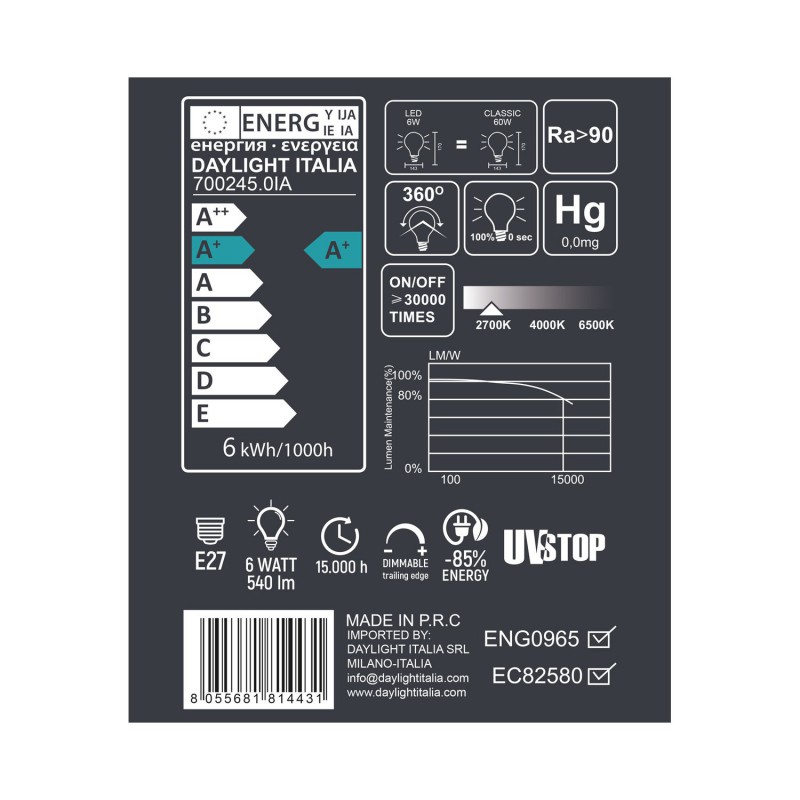 Náš sortiment produktov bol rozšírený pridaním nových luxusných dekoratívnych žiaroviek talianskej značky Daylight Italia. Sme výhradným distribútorom tejto značky pre Slovensko a Českú republiku.