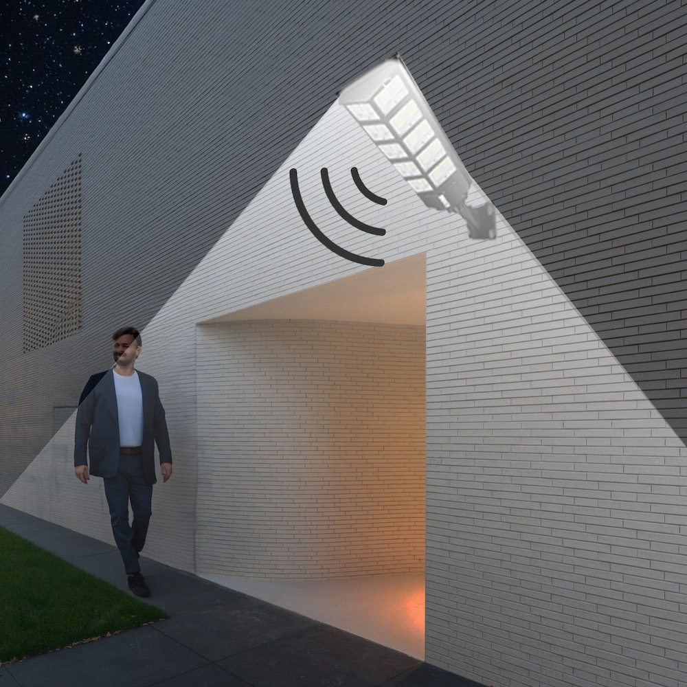 LED nástenné solárne svietidlo s odnímateľným solárnym panelom, IP65 , ideálne pre umiestnenie nad vchodové dvere, pre osvetlenie záhrady, jazierok, terasy alebo chodníkov. Svietidlo sa nabíja behom dňa a po zotmení sa automaticky zapne pri zachytení pohybu.