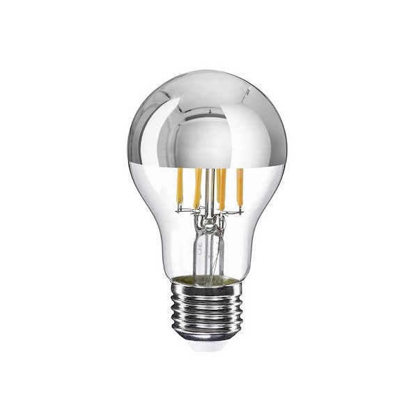 LED strieborná žiarovka zrkadlová 7W, E27, 650lm, A60, Stmievateľná