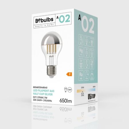 Zrkadlová dekoračná žiarovka je prekrásna moderná žiarovka obsahujúca zrkadlové sklo, ktoré vytvára jedinečné efekty na stenu. Ideálna pre otvorené svietidlá, do hotelov, reštaurácií alebo do domácnosti. Svetelný zdroj tvorí technológia Filament, ktorá poskytuje väčšiu úsporu energie ako tradičné klasické žiarovky. Priemerná životnosť 15000 hodín účinne znižuje frekvenciu výmeny žiaroviek. Svetlo, ktoré sa odráža späť od špeciálneho zrkadla vytvára mäkký a okolitý efekt. Nová LED žiarovka so zrkadlom je inovatívna žiarovka, ktorá vytvára dobrú kombináciu nových LED diód. Polovica zrkadla žiarovky odráža svetlo späť k základu žiarovky. Postriebrená Konštrukcia difúzneho skla zaručí že nebudete oslepený jasom ako pri štandardných žiarovkách.