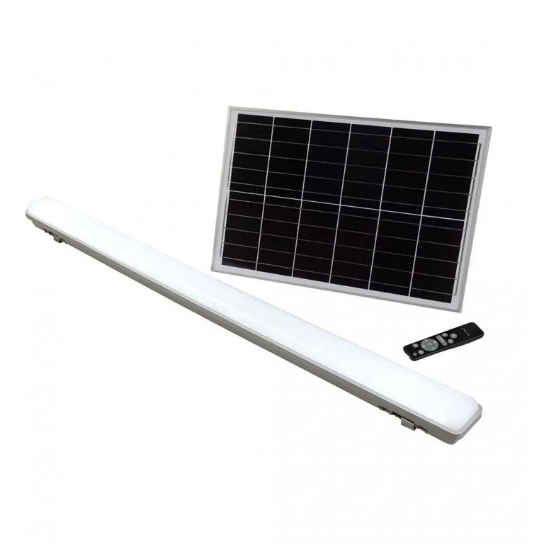 LED stropné lineárne svietidlo so solárnym panelom na zmenu farby 3v1 s diaľkovým ovládaním. Lineárne LED stropné svietidlo s výkonom 18W 3v1 funkciou zmeny farby s vlastným napájaním pomocou nabíjacej batérie s 25W solárnym panelom a rádiofrekvenčným (RF) diaľkovým ovládačom pre diaľkové ovládanie funkcií: ON / OFF zapaľovanie, automatický režim , funkcia časovača a nastavenie intenzity svetla. Vyrobené z pevného sivého polykarbonátu (PC) s nepriehľadným led krytom (Milky Cover).