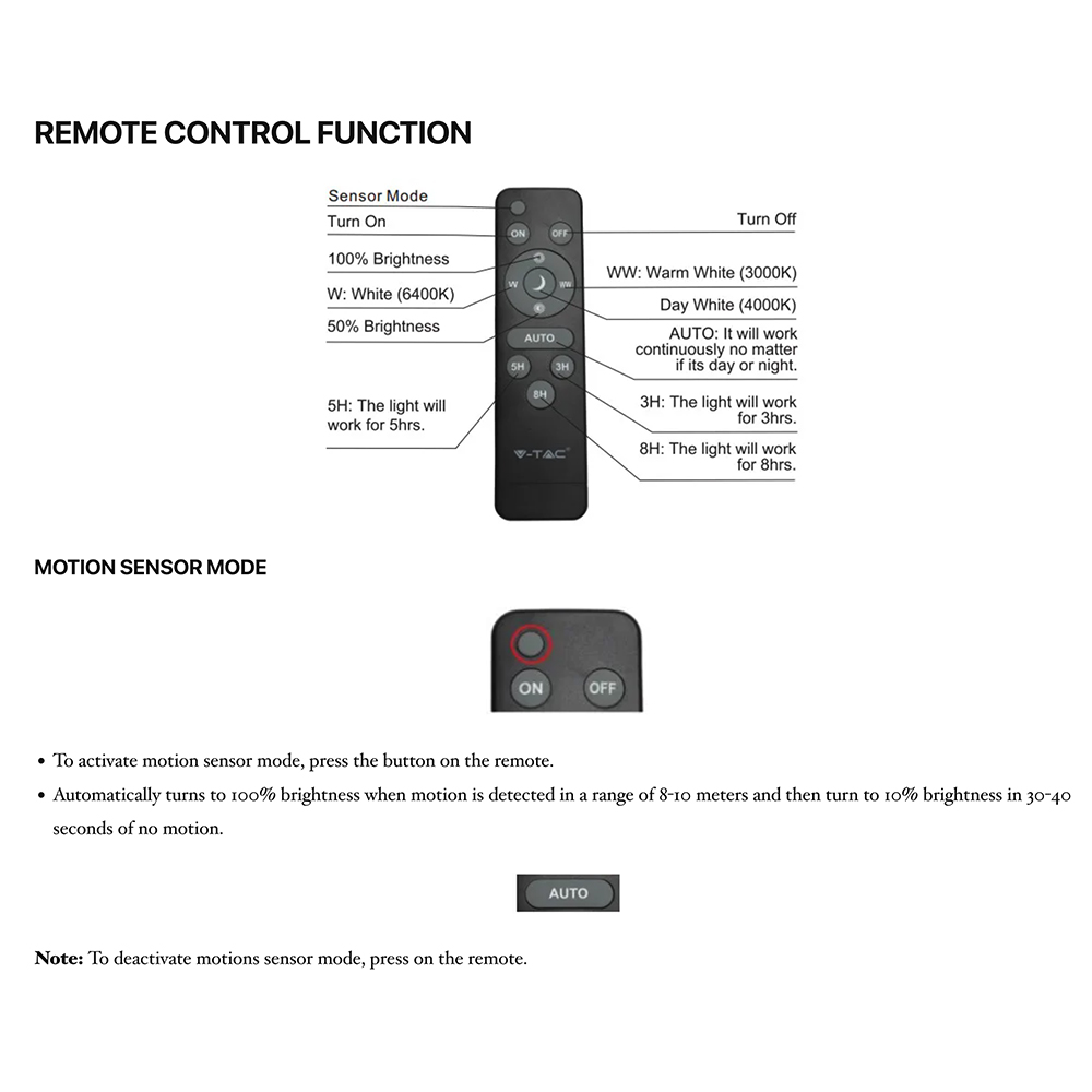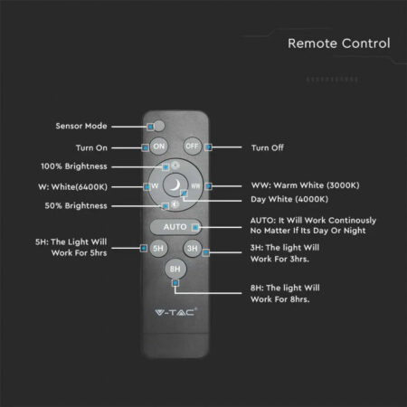 - Farba svetla: Zmena farby 3V1 (3000K / 4000K / 6400K) – nastavenie diaľkovým ovládačom.