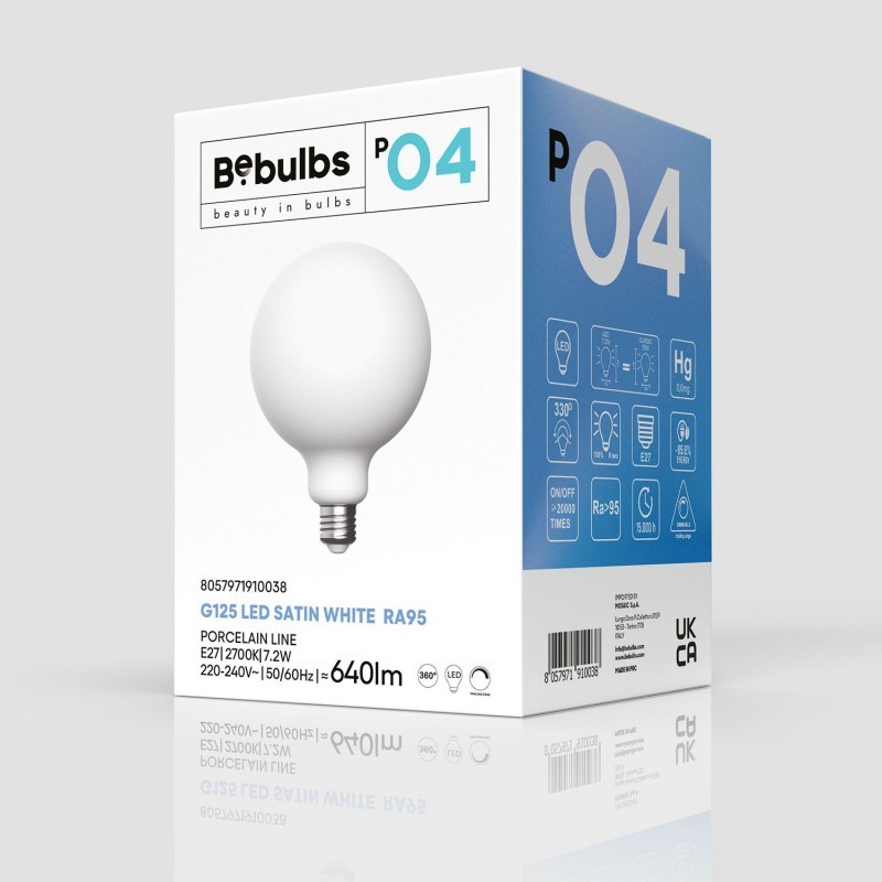 LED žiarovka s porcelánovým efektom E27, CRI95, G125, 7.2W, 2700K, Stmievateľná