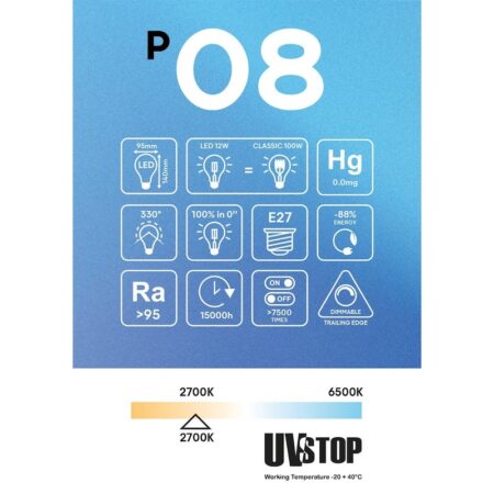 Žiarovka s porcelánovým efektom je výbornou voľbou pre tých, ktorí hľadajú kvalitné osvetlenie pre svoj domov alebo kanceláriu. S vysokým indexom podania farieb, teplou a príjemnou teplotou farieb, elegantným tvarom a sklenenou povrchovou úpravou s porcelánovým efektom, ktorá vyžaruje homogénne svetlo, je táto žiarovka štýlovým a funkčným doplnkom každej lampy. Žiarovka má navyše vysoký index podania farieb (CRI) 95 , čo znamená, že presne reprodukuje farby. S nízkou spotrebou energie spotrebuje táto žiarovka menej energie ako tradičné klasické žiarovky, čím šetrí účet za elektrinu. Okrem toho majú LED žiarovky oveľa dlhšiu životnosť ako klasické žiarovky, čo znižuje potrebu častých výmen.