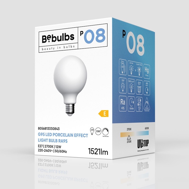 „Kolekcia s porcelánovým efektom“ pre tých, ktorí hľadajú kvalitné osvetlenie pre svoj domov alebo kanceláriu. S vysokým indexom podania farieb, teplou a príjemnou teplotou farieb, elegantným tvarom a sklenenou povrchovou úpravou s porcelánovým efektom, ktorá vyžaruje homogénne svetlo, sú tieto žiarovky štýlovým a funkčným doplnkom každej lampy.