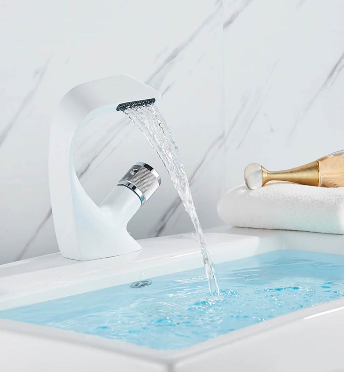 Luxusná a dizajnová umývadlová batéria v bielom prevedení