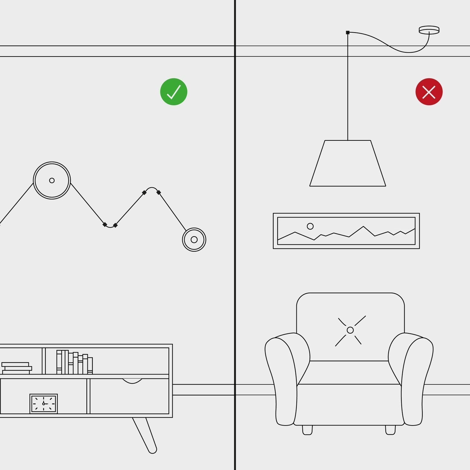 Produkt nemožno použiť ako konečné stropné upevnenie pre závesné svietidlo, pretože nie je určený na podopretie záťaže alebo závaží (lámp, svietidiel alebo iných zavesených prvkov)
