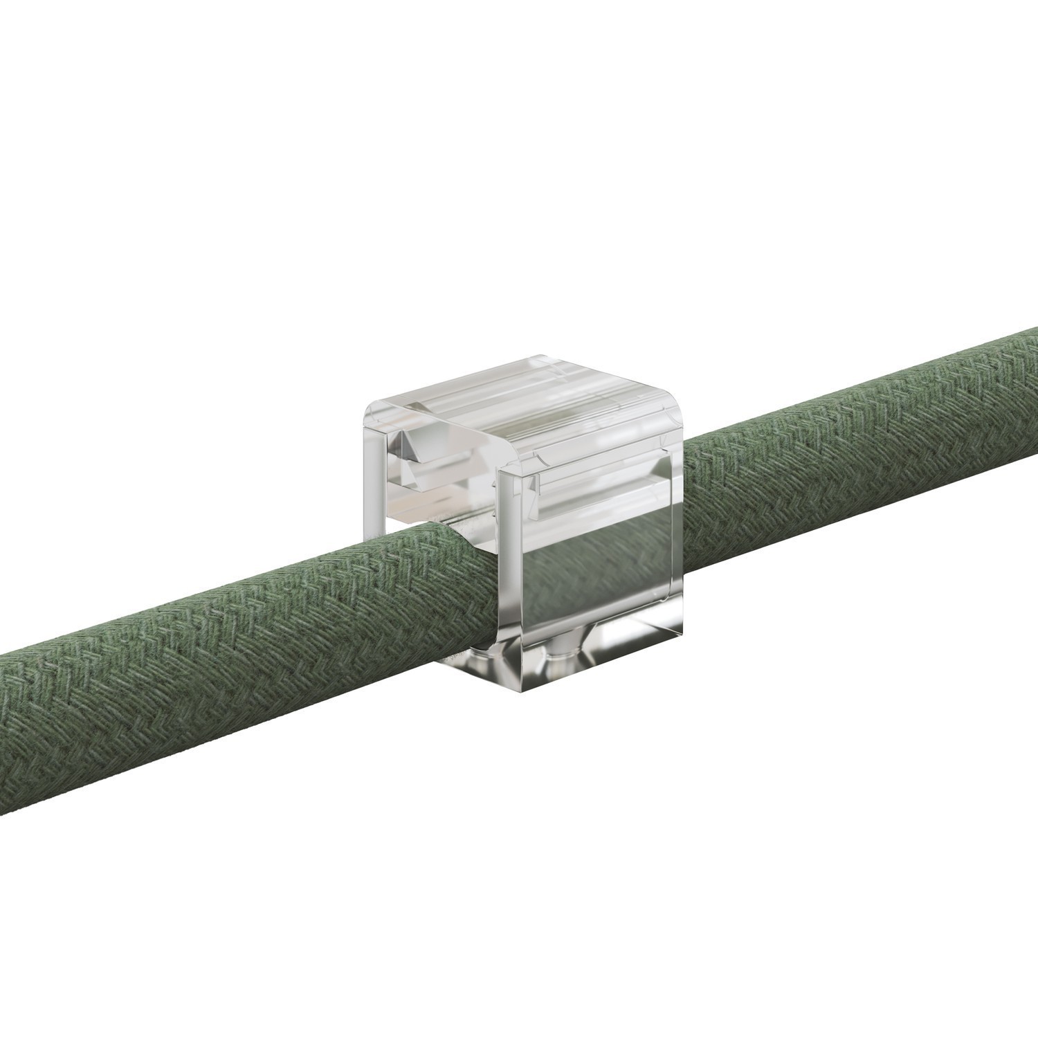 Mini nástenný úchyt na textilný kábel, transparentný je ideálne príslušenstvo na upevnenie elektrických káblov s textilným poťahom na stenu bez narušenia estetiky inštalácie. Vďaka minimalistickému dizajnu a extrémne kompaktným rozmerom je takmer nepostrehnuteľný pre oko. Je vyrobený z priehľadného polykarbonátu a splýva s povrchom, čo umožňuje káblu definovať priestor a zvýrazniť jeho farby a textúry.