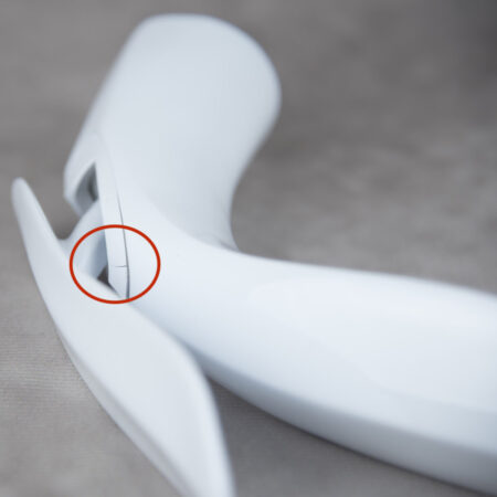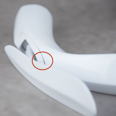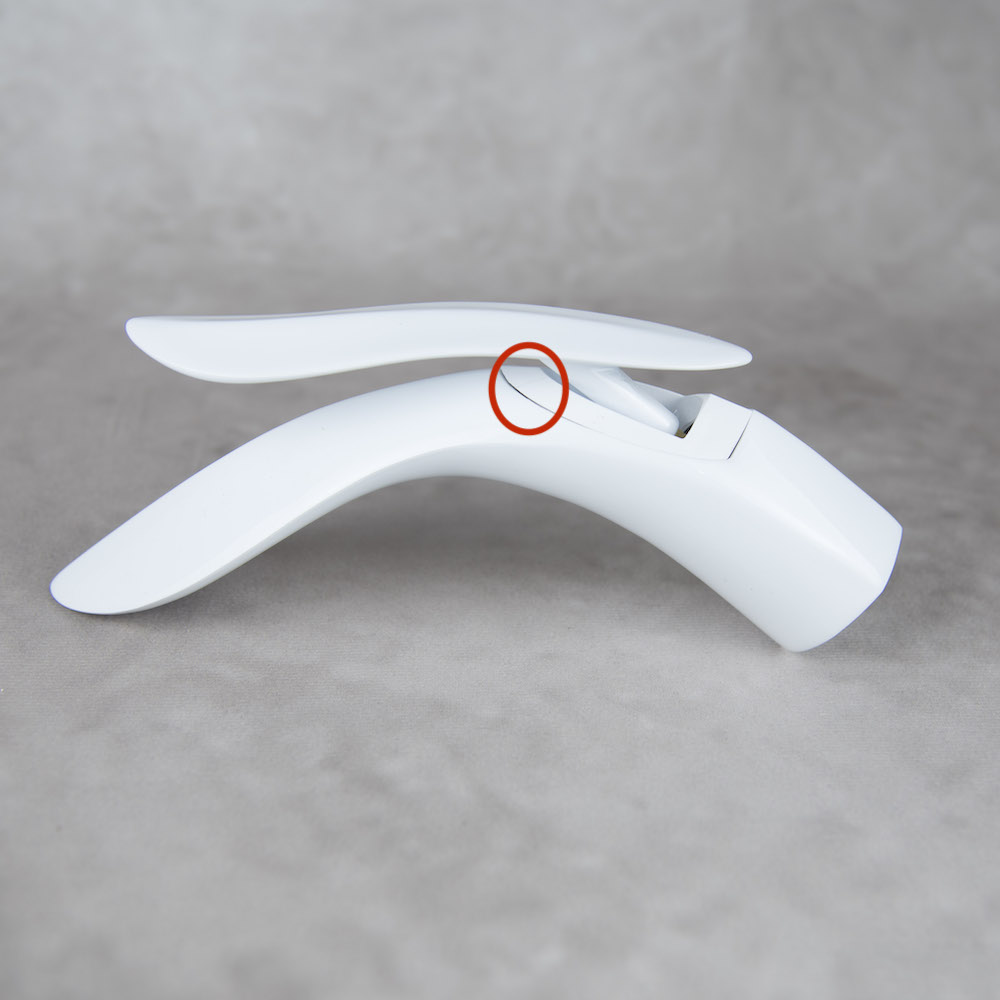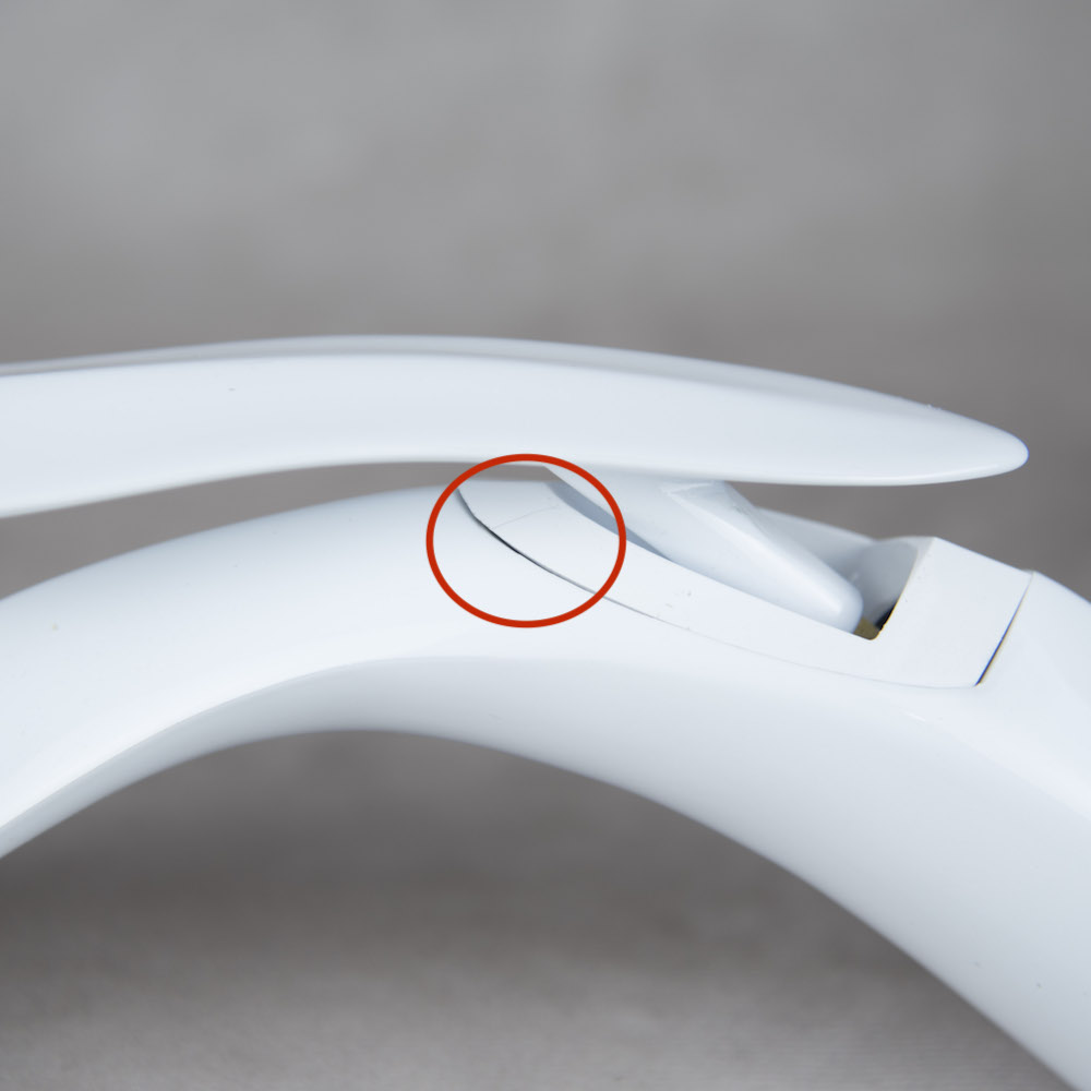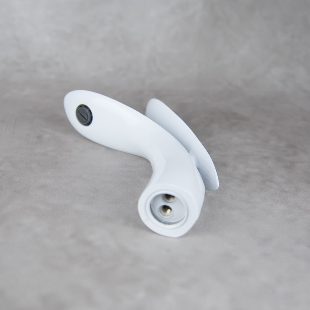 Moderná dizajnová umývadlová batéria v bielej lesklej farbe – 2.AKOSŤ – Kozmetická vada (jemná prasklina v plastovom dekoračnom kryte, ktorá je málo viditeľná)