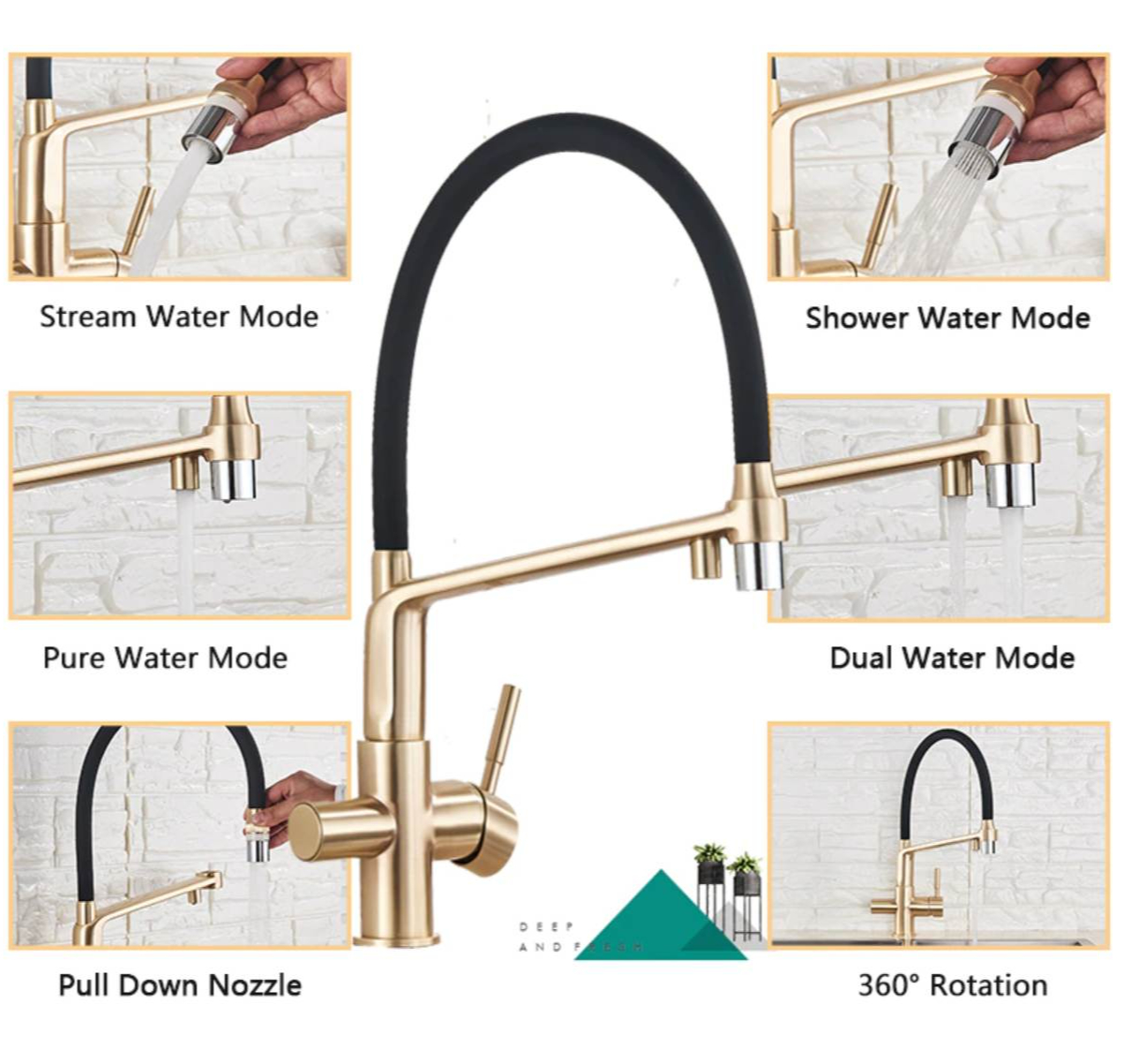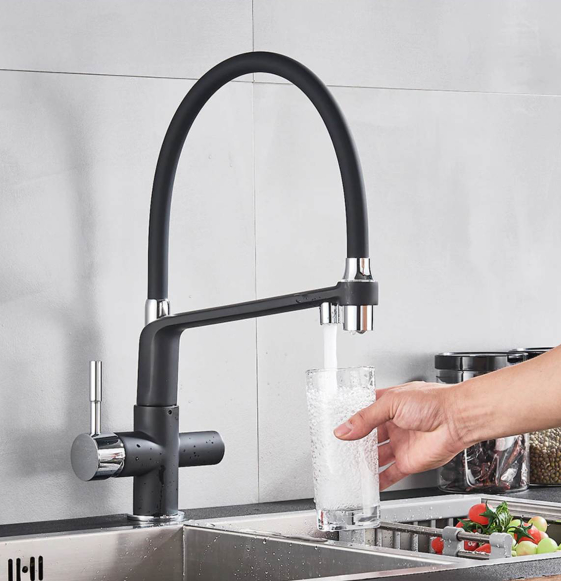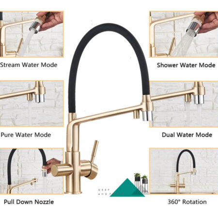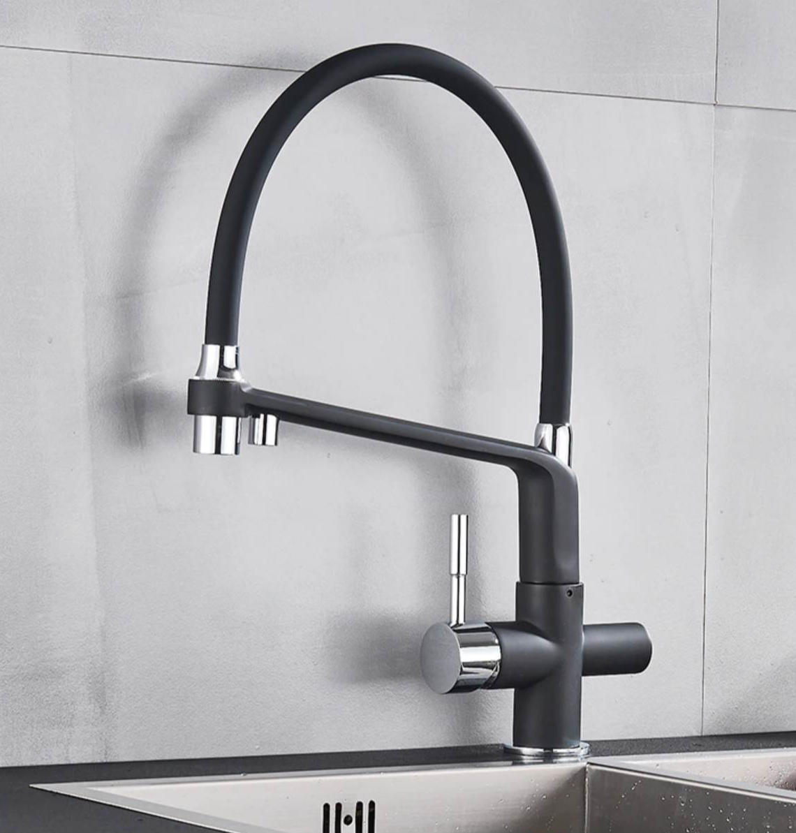 Štýl: drezová batéria – otočná s dvomi výstukami vody