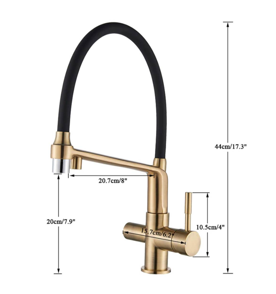 Rozmery: výška 44 cm celá batéria , výška 20 cm výtok, dosah výtoku 21 cm bez odopnutia, šírka cca 6 cm