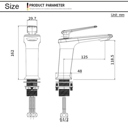 Rozmery: výška 16,2 cm celá batéria , výška 12 cm výtok, dosah výtoku 11 cm , šírka cca 5 cm
