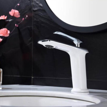 Moderná umývadlová batéria v bielo – chrómovom prevedení