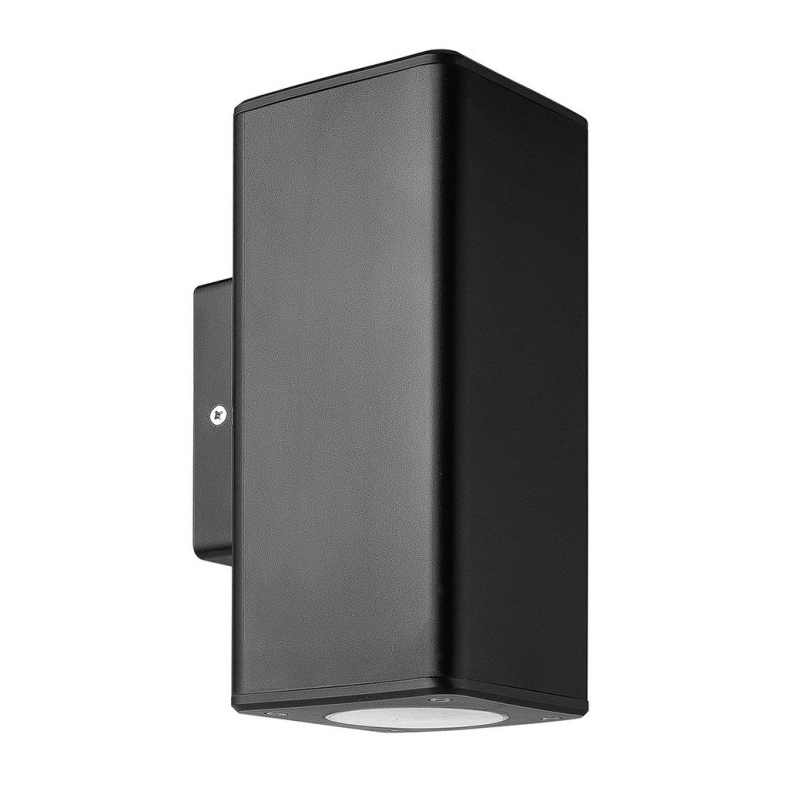 Moderná vonkajšia nástenná lampa VALENCIA, obojsmerná, IP65 na 2  žiarovky s veľkým závitom GU1o príkone max 7W, fungujúce na napätí 220-240V. Toto vonkajšie svietidlo v tvare modernej lucerny je perfektným riešením pre osvetlenie vchodu do domu, pergoly, terasy, apod. Jedná sa o kvalitné vonkajšie svietidlo ktorého robustné telo je vyrobené z kvalitného kovu, ktorý nehrdzavie. Narozdiel od lacných plastových vonkajších nástenných svietidiel, ktoré pôsobením vonkajších podmienok, najmä slnečného žiarenia, postupne krehnú, menia farbu a rozpadajú sa, toto sa Vám s tým naším naozaj nestane. Kryt žiarovky je vyrobený z pevného plastu. Kryt rozptyľuje svetlo smerom dole a hore.