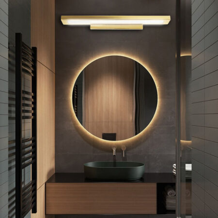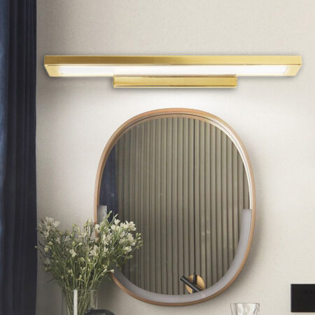Nástenné kúpeľňové LED svietidlo v zlatej farbe, 60cm, 12W. Moderné, nadčasové a veľmi elegantné nástenné ľad svietidlo, ktoré sa dokonale hodí ako osvetlenie kúpeľňovej zrkadlovej skrinky, obchodných nákladov alebo v kaderníckych salónoch. Svetlo bude skvele fungovať aj ako osvetlenie obrazov. Prevedenie v zlatom laku dodáva svetlu dokonalý design pre Vašu kúpeľňu.