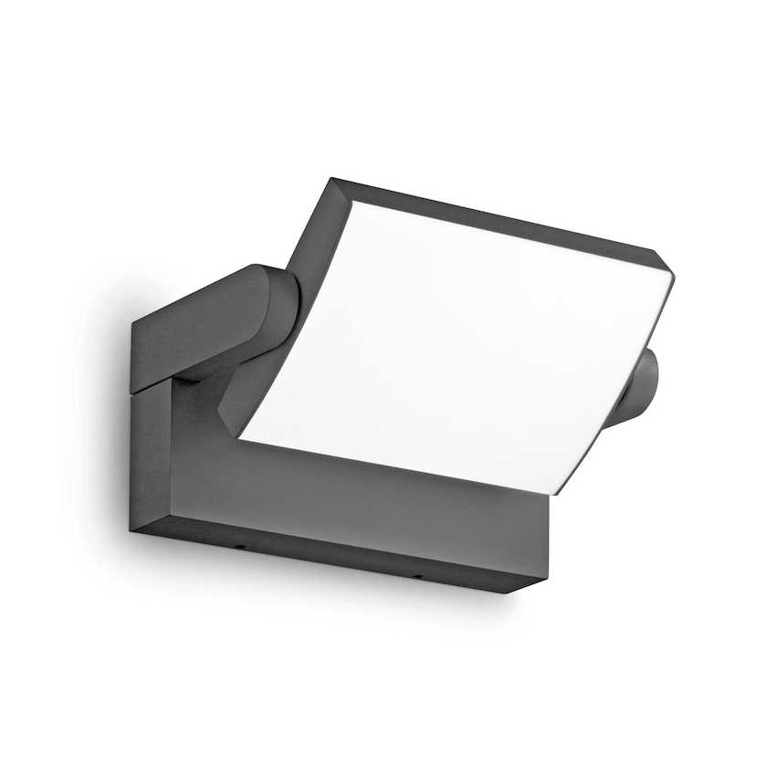 Nástenné svietidlo do exteriéru SWIPE A. Hliníkové telo s práškovým nástrekom. Nastaviteľný difúzor s lesklou opálovou polykarbonátovou clonou. Dostupné povrchové úpravy: antracit, biela, kávová alebo čierna.