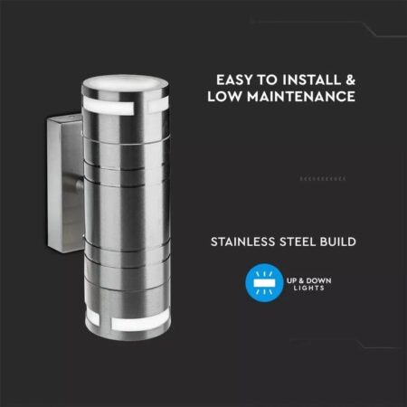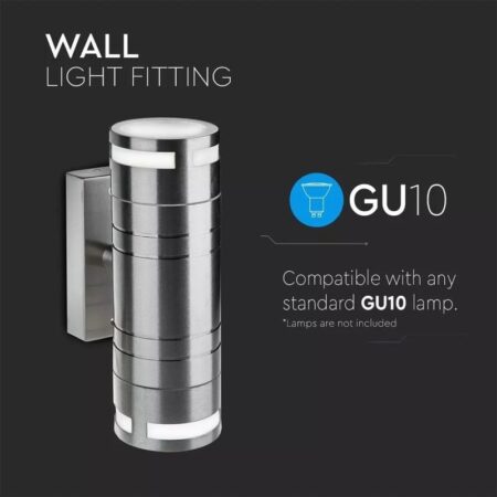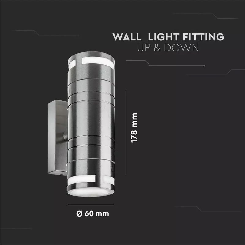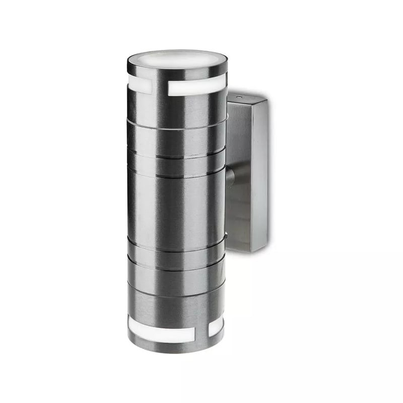 Nástenné vonkajšie svietidlo 2 x GU10, Oceľové telo, IP44. Praktické a efektívne riešenie na osvetlenie chodníkov, záhrad a chodníkov pre chodcov. Vďaka dvom pripojeniam pre bodové žiarovky GU10 vytvára svietidlo protiľahlé svetelné zdroje ideálne pre efektné osvetlenie stien a stĺpov. Jednoduchá inštalácia a použitie vďaka pripojeniu na skrutkové svorky. Súčasťou balenia sú skrutky na upevnenie hmoždiniek. Vynikajúce riešenie pre osvetlenie vonkajšieho prostredia umožňujúce úsporu energie až 80 % v porovnaní s ekvivalentnou halogénovou žiarovkou a s menšou údržbou
