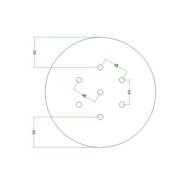 Okrúhla kovová stropná rozeta s priemerom 20 cm a 7 otvormi