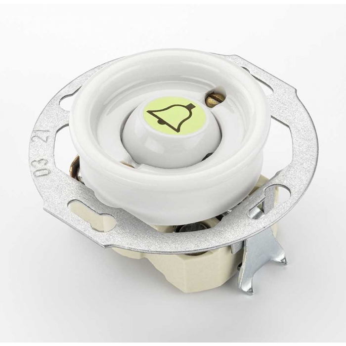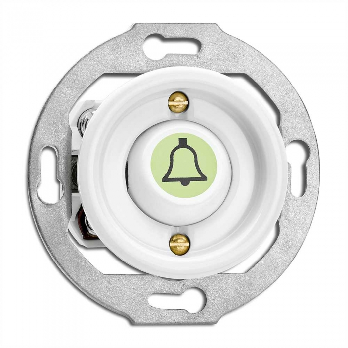 Porcelánové retro tlačidlo symbol zvončeka, fluoresenčné (1/0), (bez rámčeka) biely porcelán