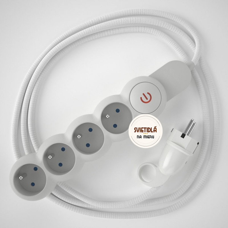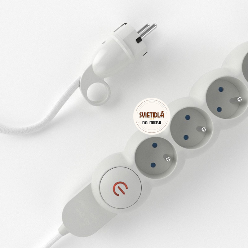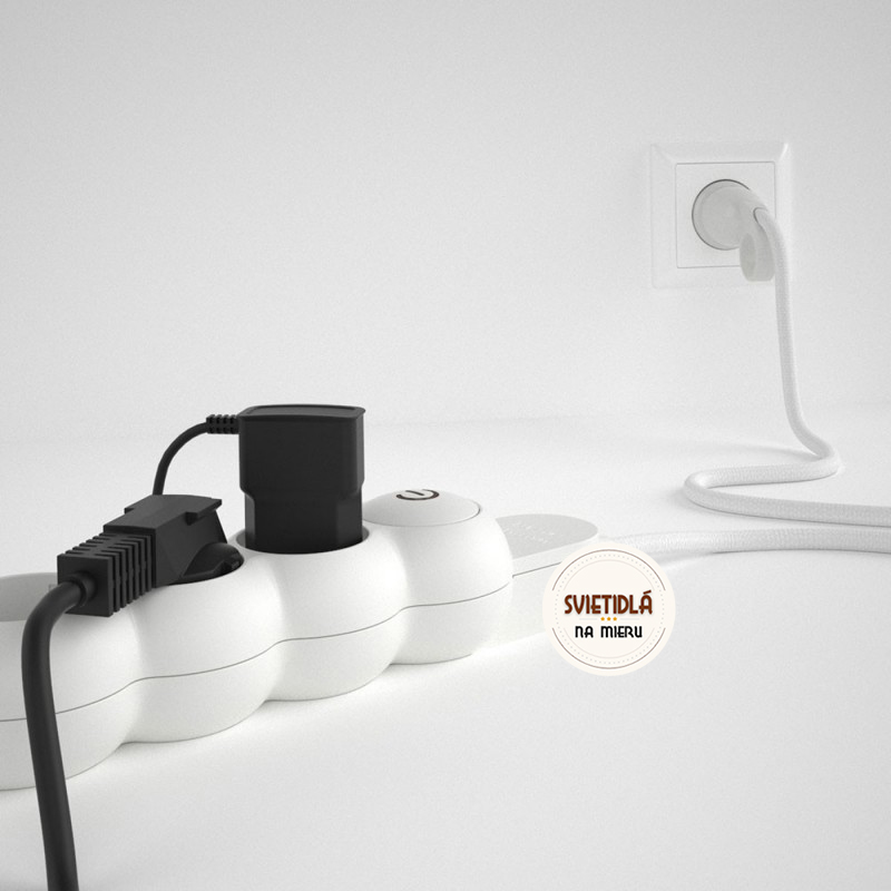 Predlžovací kábel s elektrickým káblom vo vybranej farbe nie je len bežná viacnásobná zásuvka! 4 zásuvky Schuko/10A sú umiestnené diagonálne, aby sa optimalizoval priestor, ktorý zaberajú transformátory. Kábel s veľkým prierezom (1,5 mm²) je 100% vyrobený v Taliansku.