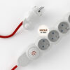 Predlžovací kábel s elektrickým káblom vo vybranej farbe nie je len bežná viacnásobná zásuvka! 4 zásuvky Schuko/10A sú umiestnené diagonálne, aby sa optimalizoval priestor, ktorý zaberajú transformátory. Kábel s veľkým prierezom (1,5 mm²) je 100% vyrobený v Taliansku.