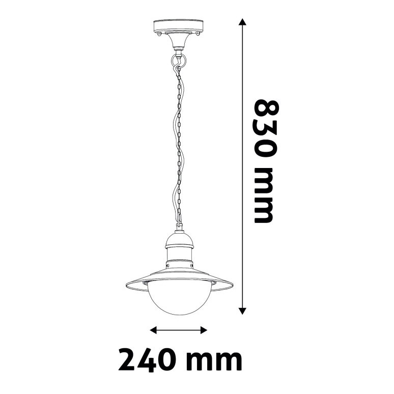Prémiové vonkajšie závesné svietidlo na 1 žiarovku s veľkým závitom E27 o príkone max 20W, fungujúce na napätí 220-240V. Toto vonkajšie svietidlo v tvare starožitnej lucerny je perfektným riešením pre osvetlenie vchodu do domu, pergoly, terasy, apod. Jedná sa o kvalitné vonkajšie svietidlo ktorého robustné telo je vyrobené z kvalitného kovu, ktorý nehrdzavie. Narozdiel od lacných plastových vonkajších nástenných svietidiel, ktoré pôsobením vonkajších podmienok, najmä slnečného žiarenia, postupne krehnú, menia farbu a rozpadajú sa, toto sa Vám s tým naším naozaj nestane. Kryt žiarovky je vyrobený z plastu, ktorý je odolnejší proti prasknutiu, než sklo. Kryt rozptyľuje svetlo najmä smerom nadol, čiastočne aj do strán.