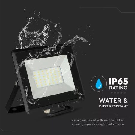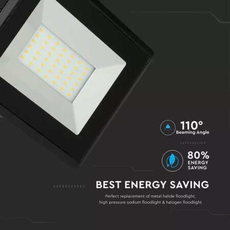 Reflektor LED E-Series 50W, Denná biela, 4000K, 4250lm, čierny. Ultra tenká konštrukcia z tlakovo liateho hliníka v bielej farbe má kryt z priehľadného skla SMD. Tenký dizajn ho robí ľahším ako bežný reflektor a ľahšie sa inštaluje na stenu (dodáva sa s držiakom na upevnenie). Okrem toho je odolný voči vode (IP65 & IK06), a preto môže byť inštalovaný aj vo vonkajších priestoroch, ako sú záhrady, dvory, vily atď. Skvelý vo video monitorovacích a bezpečnostných systémoch, vzhľadom na nízku absorpciu môže byť zapnutý nepretržite.