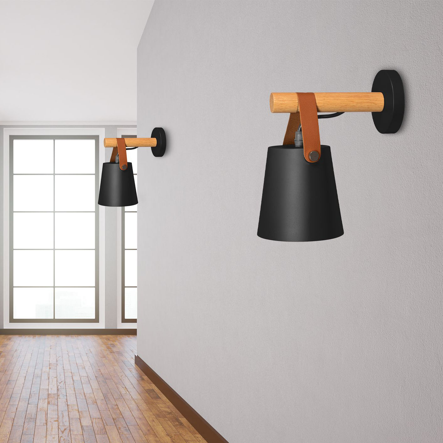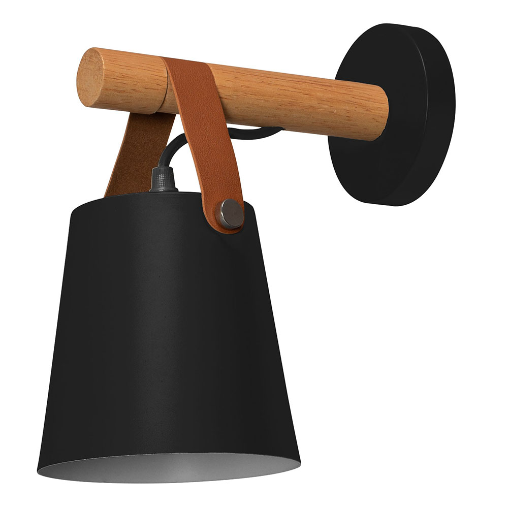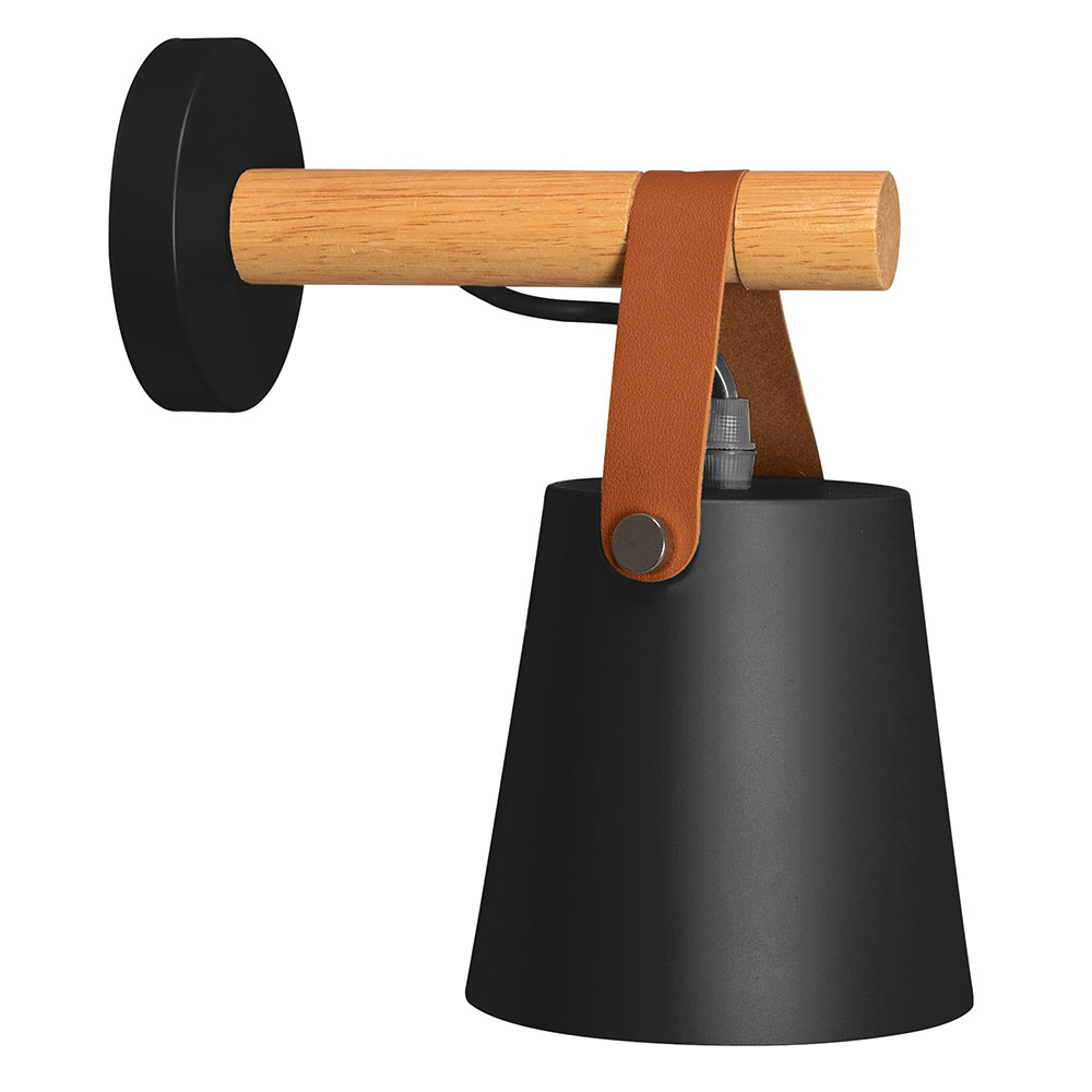 Retro nástenná lampa s remeňom v čiernej farbe