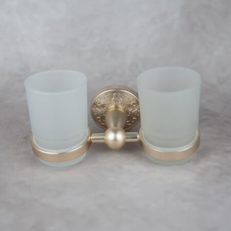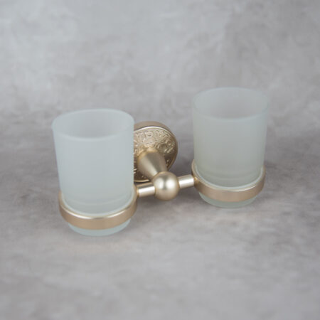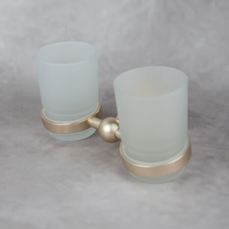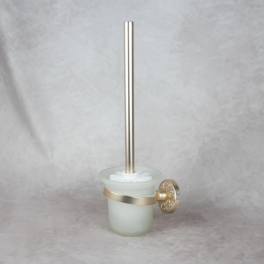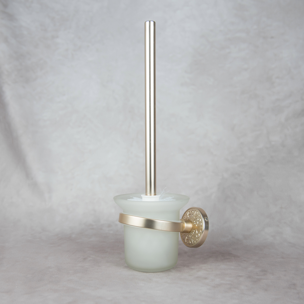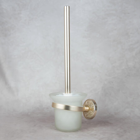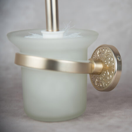 Retro sada v jemnej zlatej farbe a mliečneho skla. Pocta starým časom. Minimalistická a elegantná. Toto je mimoriadne praktická sada toaletnej kefy a držiaka do vašej kúpeľne.