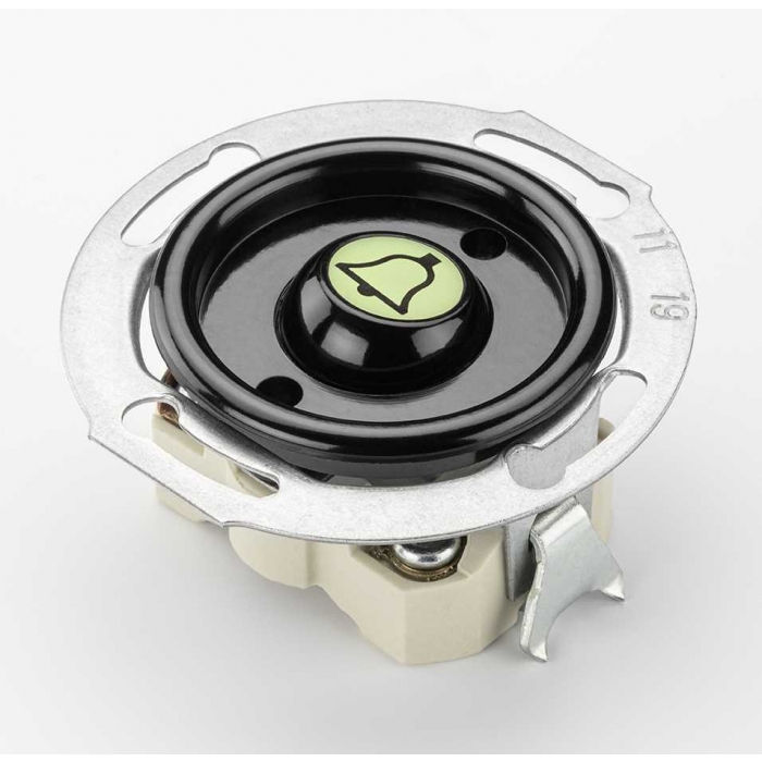 Retro tlačidlo symbol zvončeka, fluoresenčné (1/0),(bez rámčeka) čierny bakelit