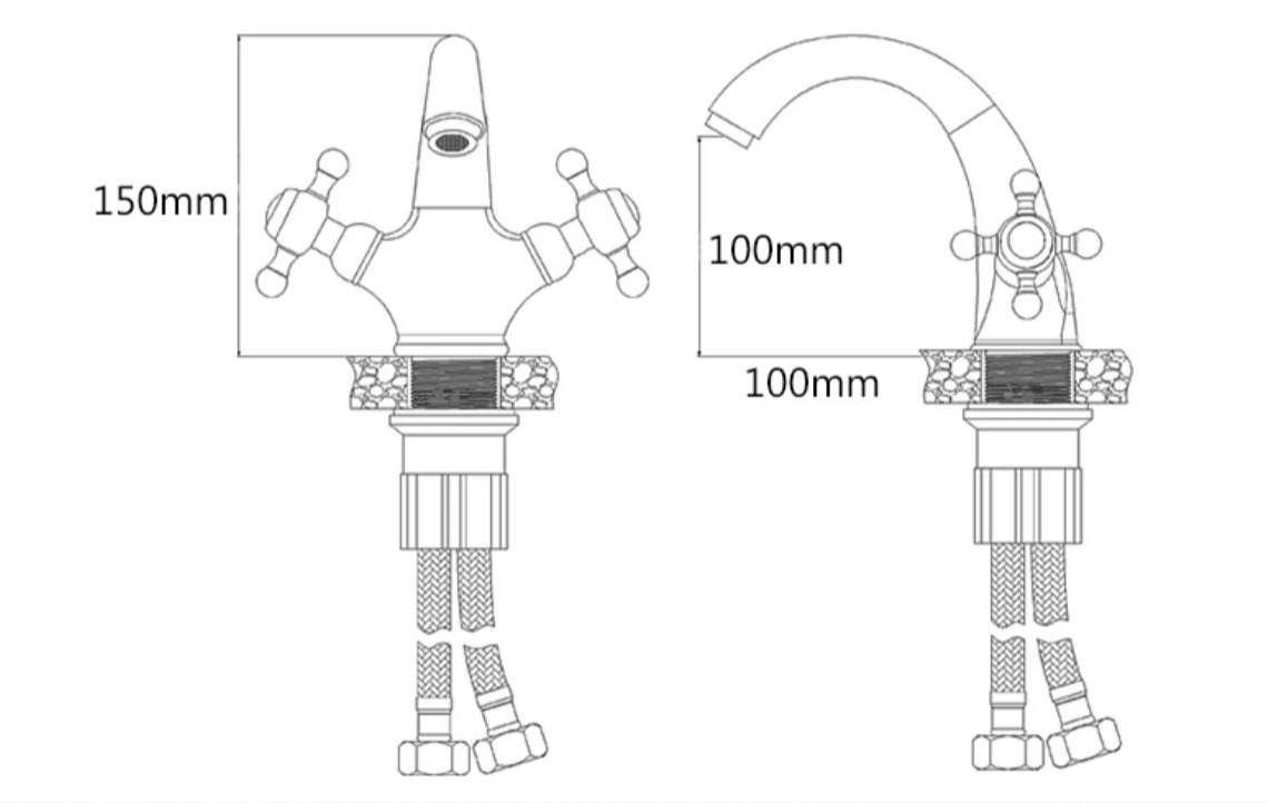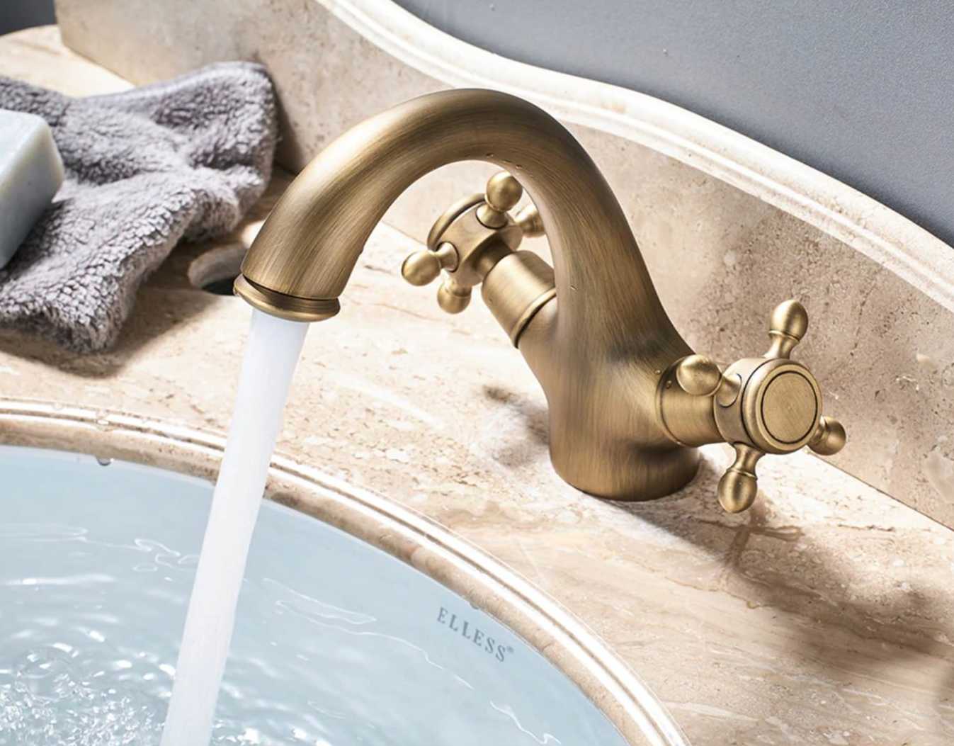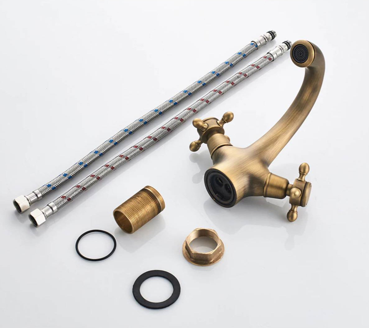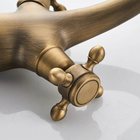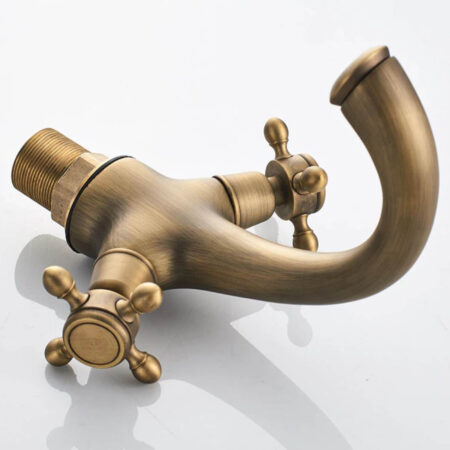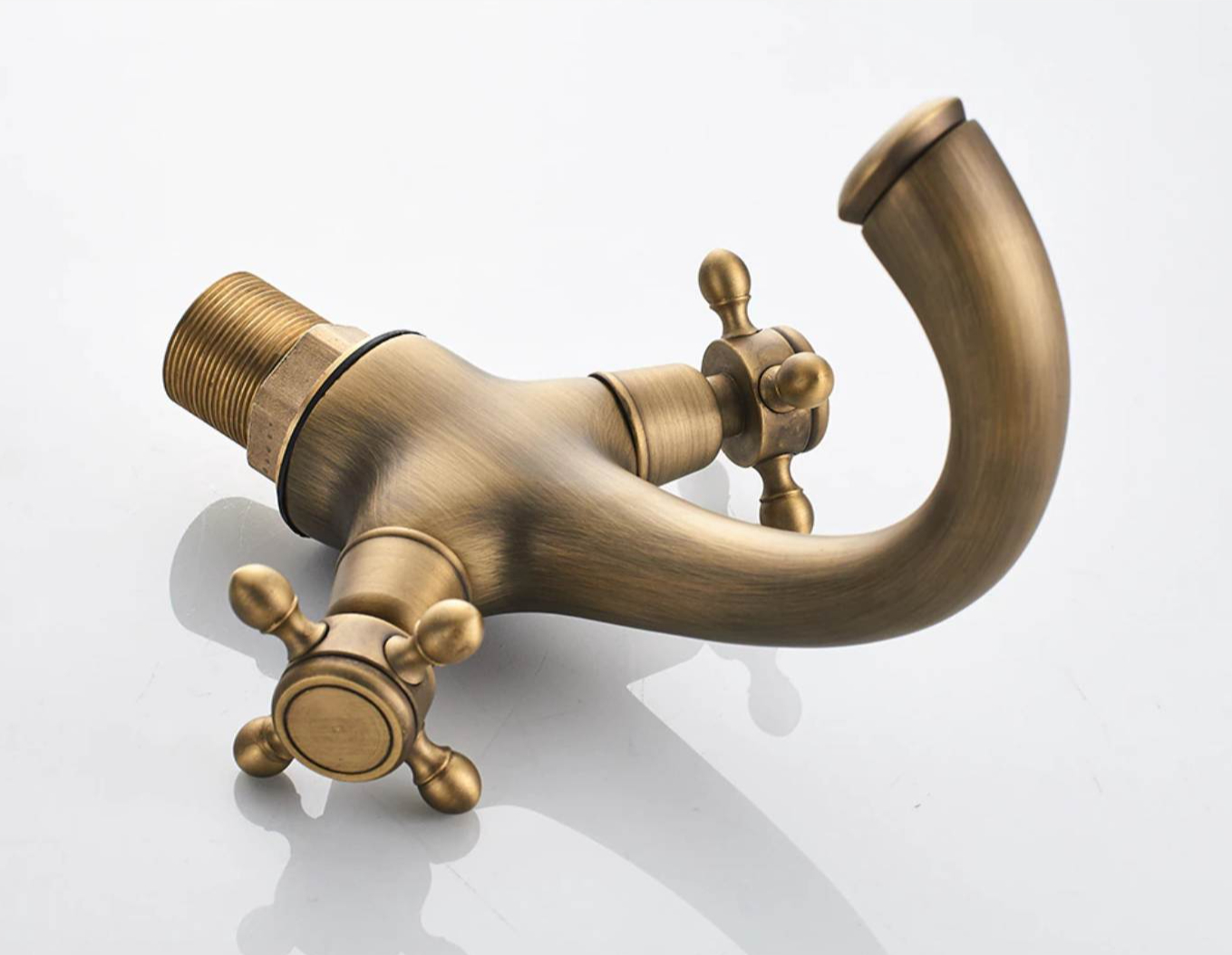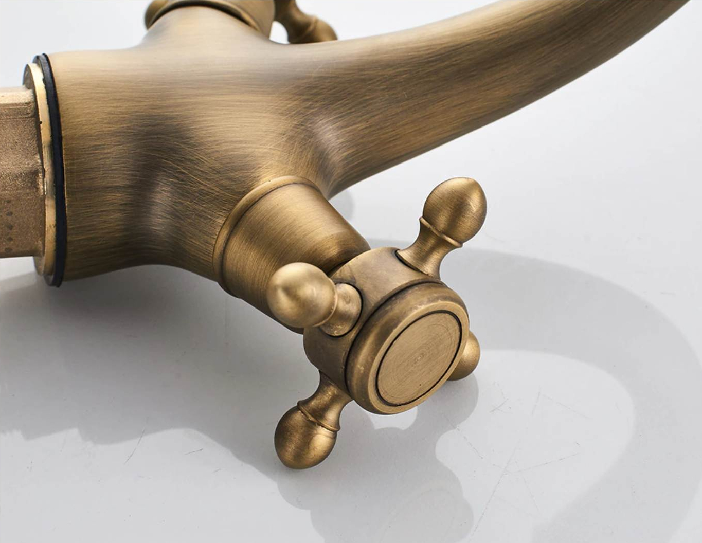 Retro vodovodná batéria v mosadznom spracovaní s dvomi kohútikmi