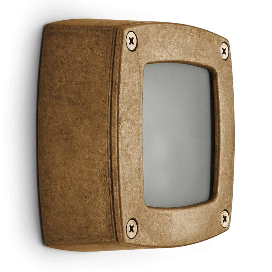 Na osvetlenie chodníkov, domov a záhrad. Jednoduché a robustné mosadzné svietidlo so skrutkovacím krytom (mosadzné skrutky) má telo z mosadze odolné voči poveternostným vplyvom a vložku z pieskovaného bezpečnostného skla.