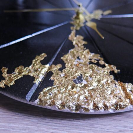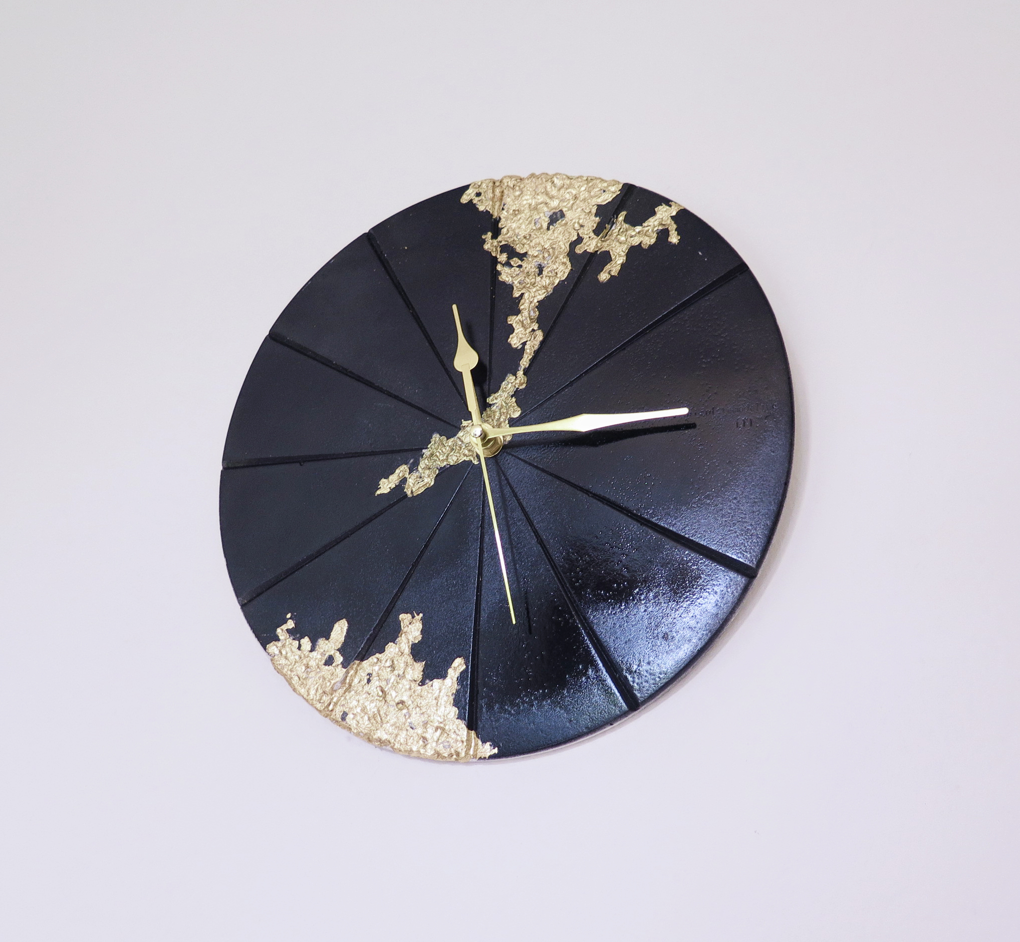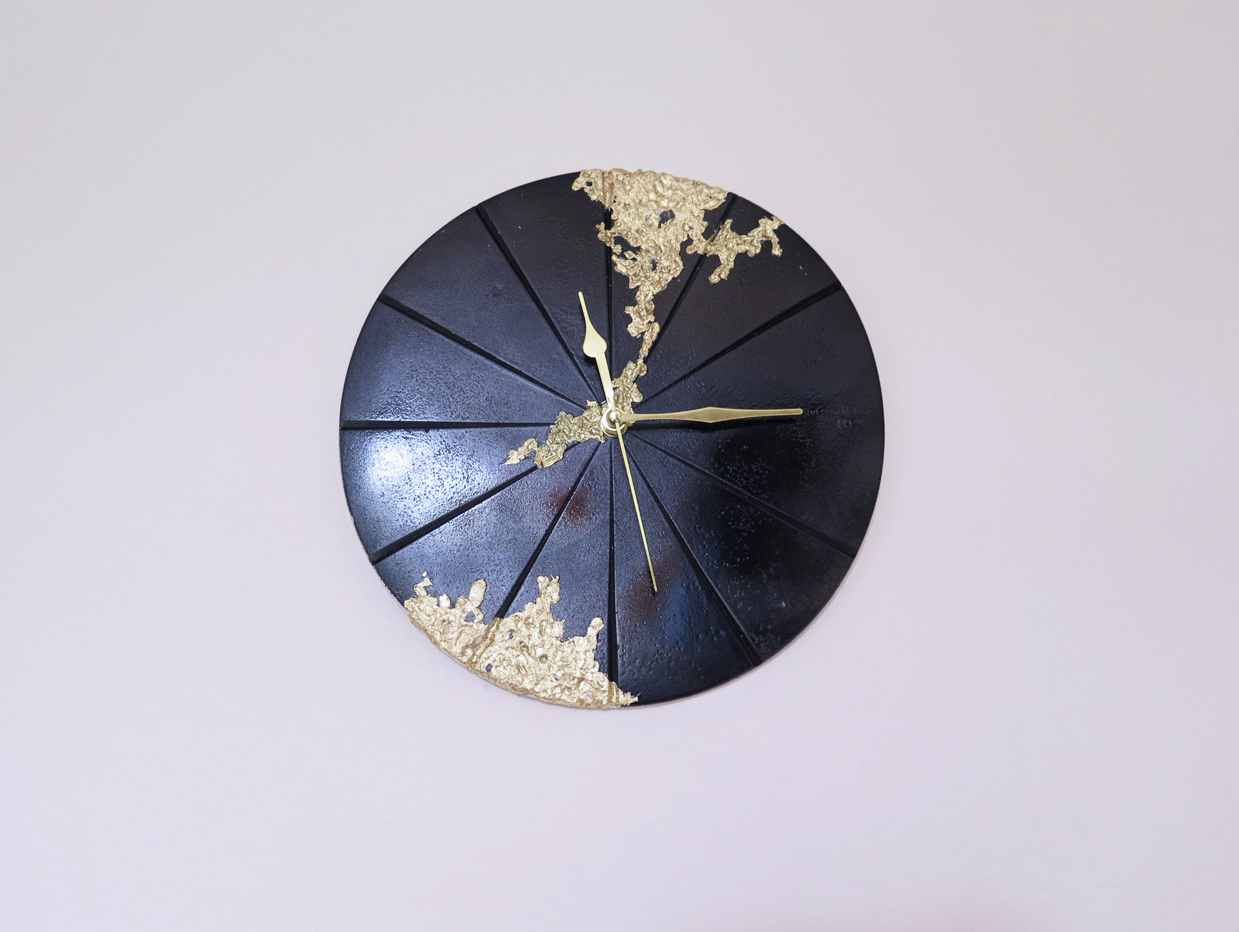 Nástenné hodiny – Black gold vychádzajú zo spojenia už dávno známeho. Temnota zdobená dokonalými zlatými jazvami sa využíva pri tých najluxusnejších šperkoch a doplnkoch.