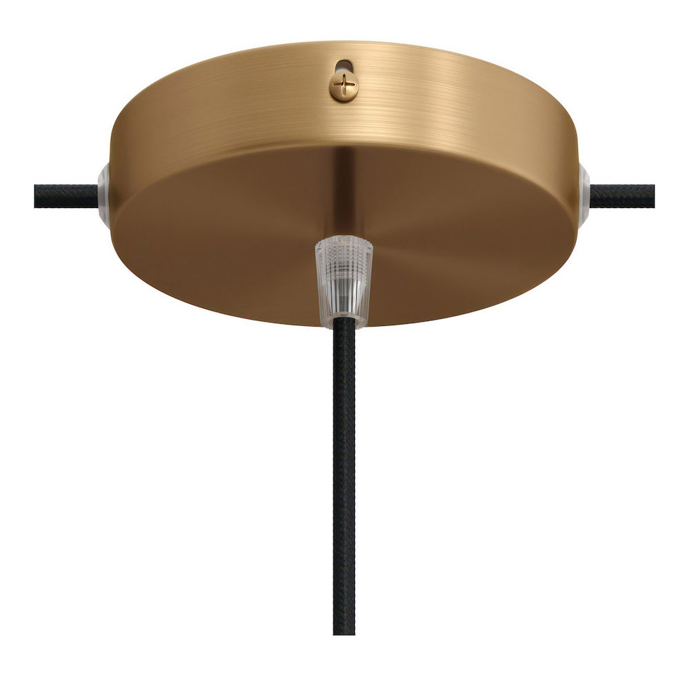 Klasickú čiernu kovovú rozetu s jedným stredovým otvorom sme teraz doplnili dvoma postrannými otvormi. Vďaka tomu môžete teraz realizovať jedinečné sériové svetlené inštalácie s využitím priechodového systému. Súprava obsahuje kotviacu konzolu so skrutkami, bielu valcovú káblovú svorku pre stredový otvor, záslepky bočných otvorov ak nie sú využité a priehľadné gumené krúžky slúžiace na ochranu vychádzajúcich textilných káblov.