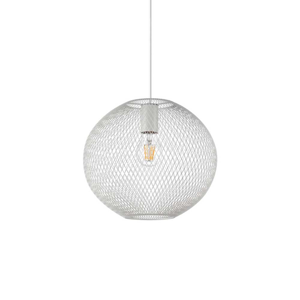 Rozeta vyrobená z matne lakovaného kovu dodáva lampe pevnú a modernú štruktúru. Výškovo nastaviteľný a predlžovací PVC kábel umožňuje prispôsobiť svietidlo vašim potrebám a vlastnostiam vášho priestoru. Difúzor vyrobený z matnej lakovanej kovovej sieťoviny dodáva celkovému dizajnu nádych modernosti a rafinovanosti.