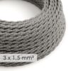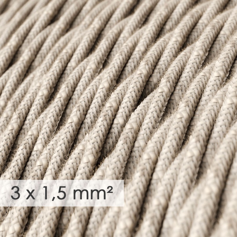 Textilný kábel so širokým priemerom 3×1,50 skrútený s neutrálnym vzorom, ľan, 1 meter