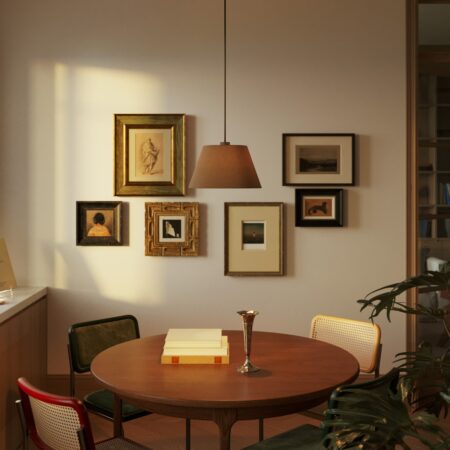 Tienidlo Impero upúta pozornosť svojím intenzívnym a živým odtieňom, ktorý mení každú lampu na dizajnový a energetický stredobod. Ručne vyrobené vo Florencii, spája remeselnú tradíciu s výraznými farbami na zvýraznenie moderných priestorov.
