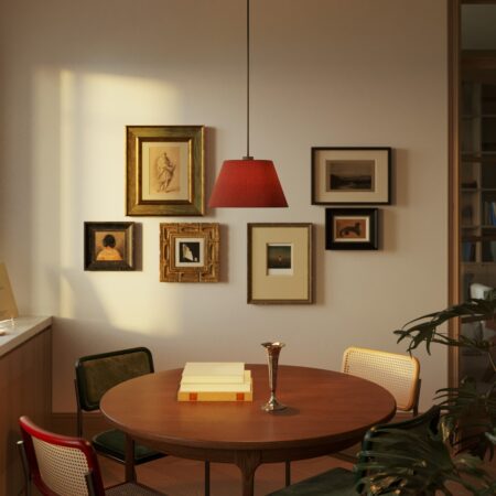 Tienidlo Impero upúta pozornosť svojím intenzívnym a živým odtieňom, ktorý mení každú lampu na dizajnový a energetický stredobod. Ručne vyrobené vo Florencii, spája remeselnú tradíciu s výraznými farbami na zvýraznenie moderných priestorov.