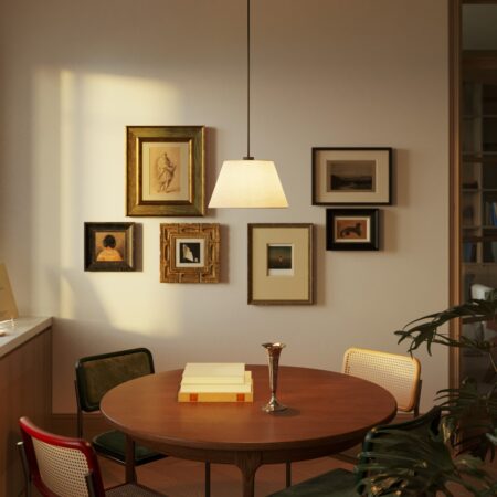 Tienidlo Impero upúta pozornosť svojím intenzívnym a živým odtieňom, ktorý mení každú lampu na dizajnový a energetický stredobod. Ručne vyrobené vo Florencii, spája remeselnú tradíciu s výraznými farbami na zvýraznenie moderných priestorov.